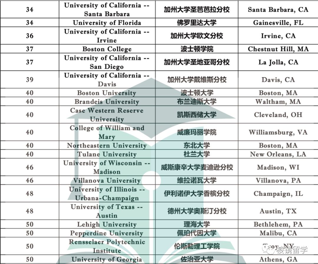 可以看出,前30学校中没有太大变化,NYU、罗切斯特、塔弗茨、还有佐治亚理工(由35上升至29)扎堆排名29位,把UCSB挤到33名。