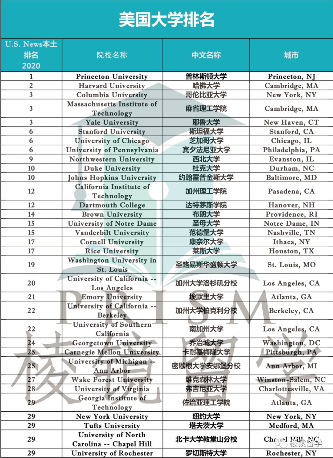 就在今天,U.S. News官网更新了最新2020年美国大学排名(2020 Best National University Ranking)。棱镜留学为各位关注美国留学的同学和家长及时整理了排名信息,以供参考。