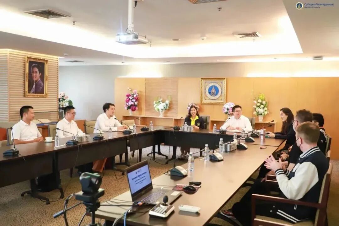 签署仪式在玛希隆大学管理学院校园内隆重举行。会议中,棱镜留学代表Peng、Jason、Zhikun和Jingye与玛希隆大学管理学院院长Dr. Vichita Ractham,副院长Dr. Prattana Punnakitikashem国际招生与交流负责人Dr. Astrid Kainzbauer等核心管理人员进行了会谈,就未来合作的细节进行了深入讨论。